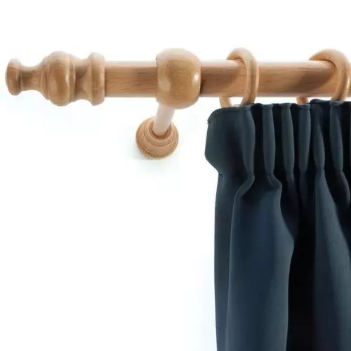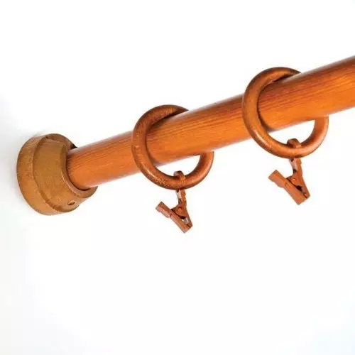 Ajánlott fa karnis: faragott végű, lakkozott fa rudak